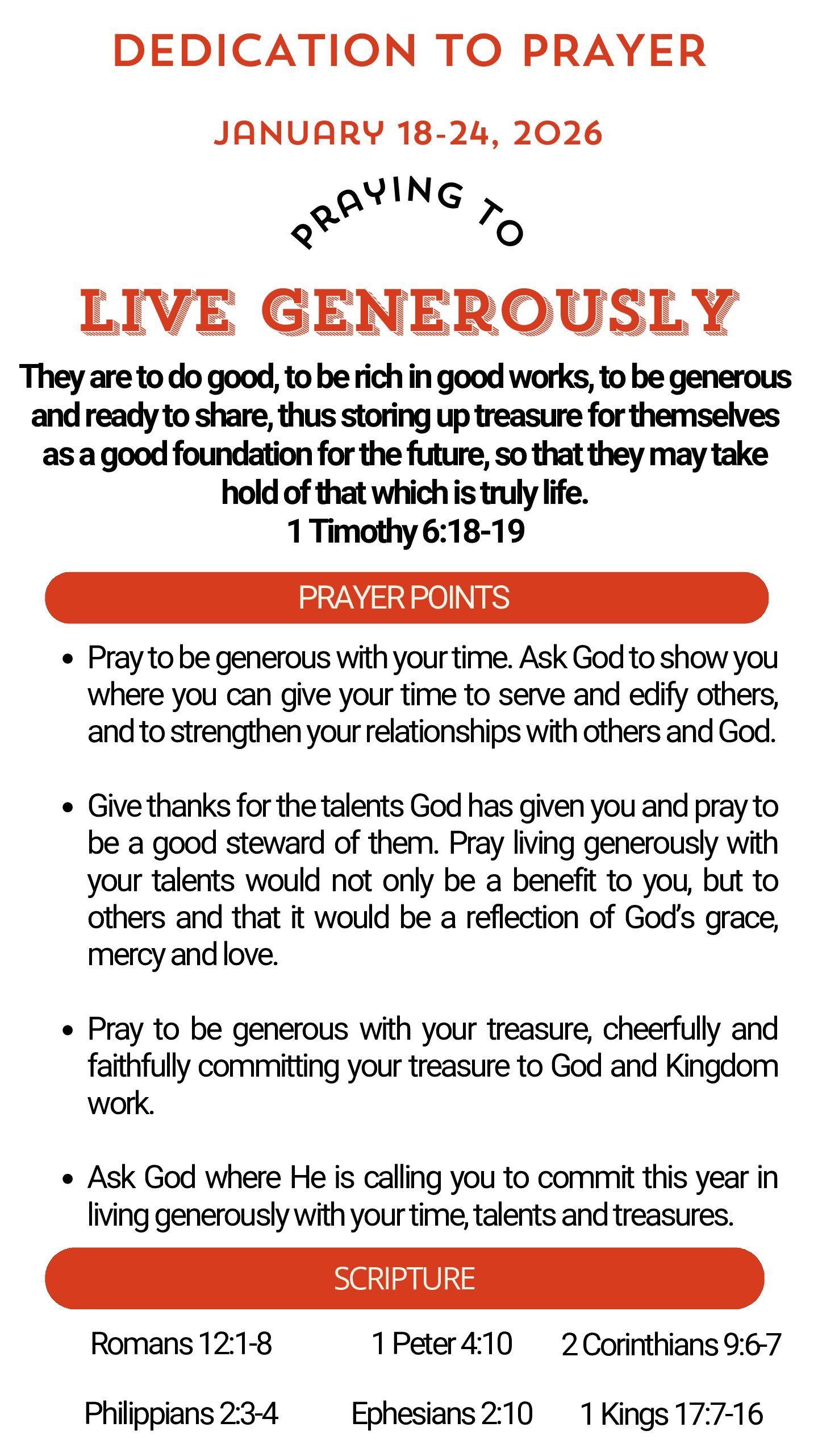 Prayer Focus: Live Generously January 18-24, 2026