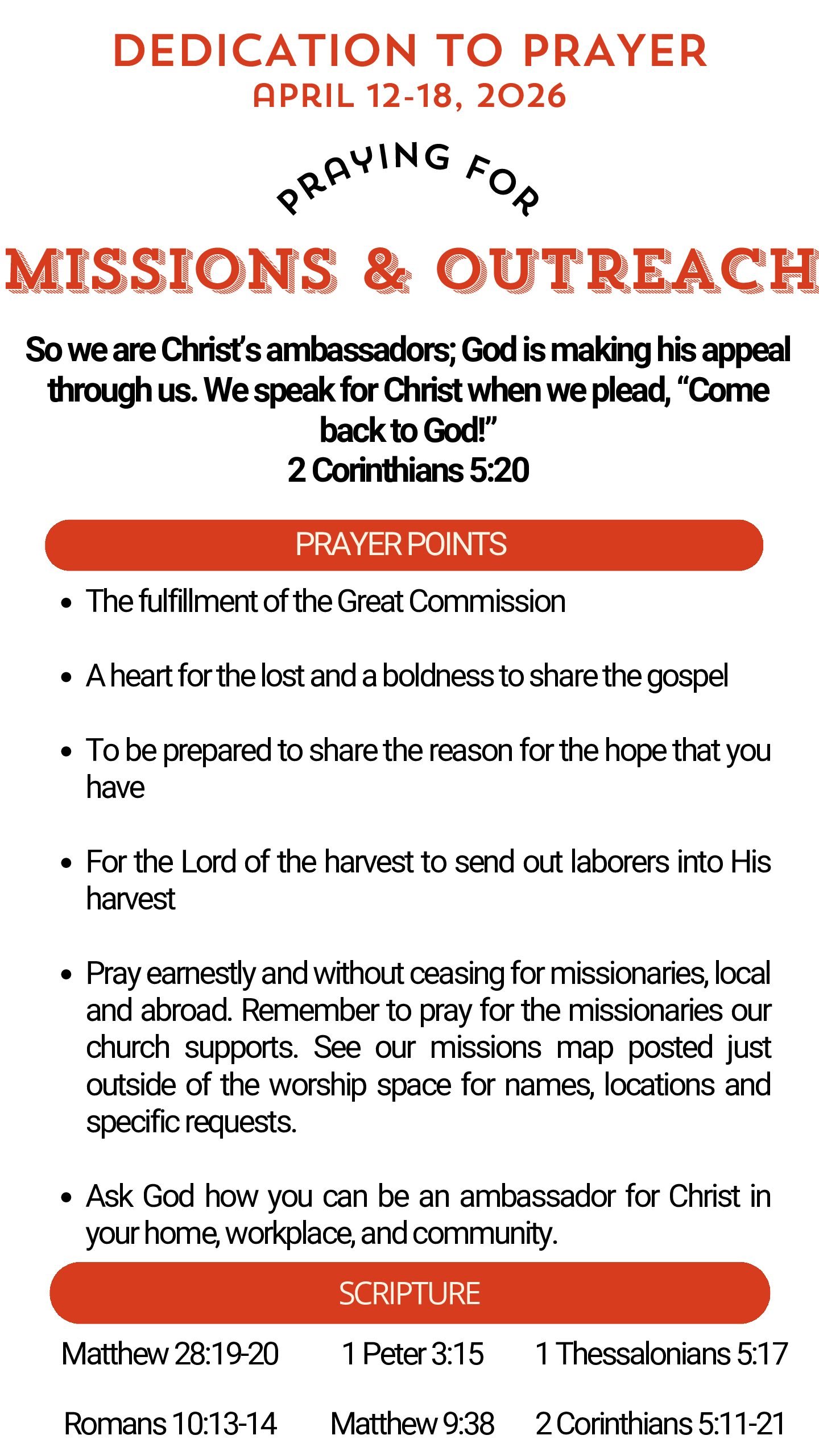 Prayer Focus: Missions & Outreach April 12-18, 2026