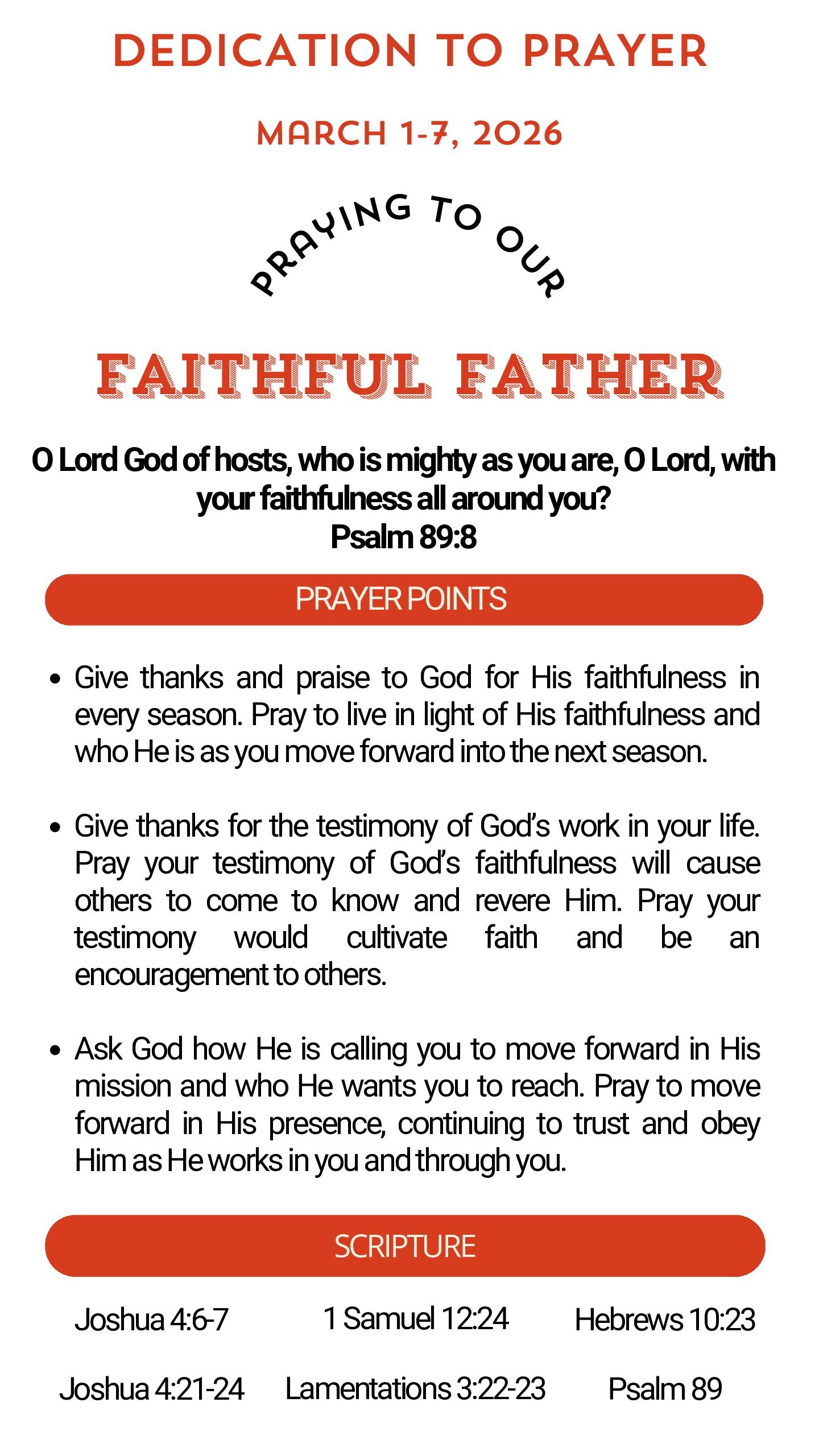 Prayer Focus: Our Faithful Father March 1-7, 2026