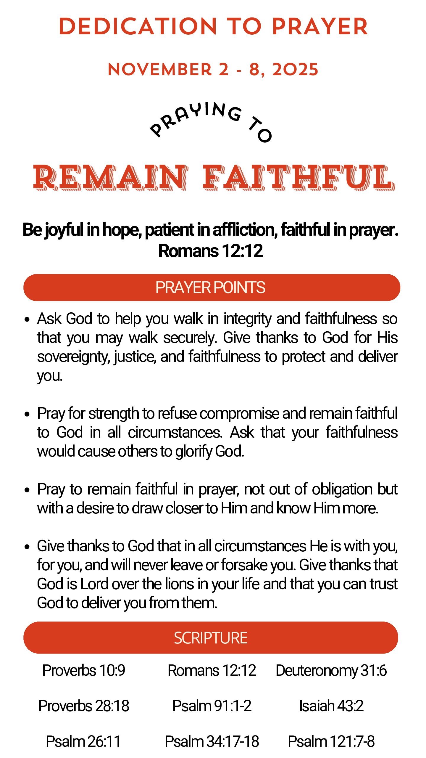 Prayer Focus: Remain Faithful November 2-8, 2025