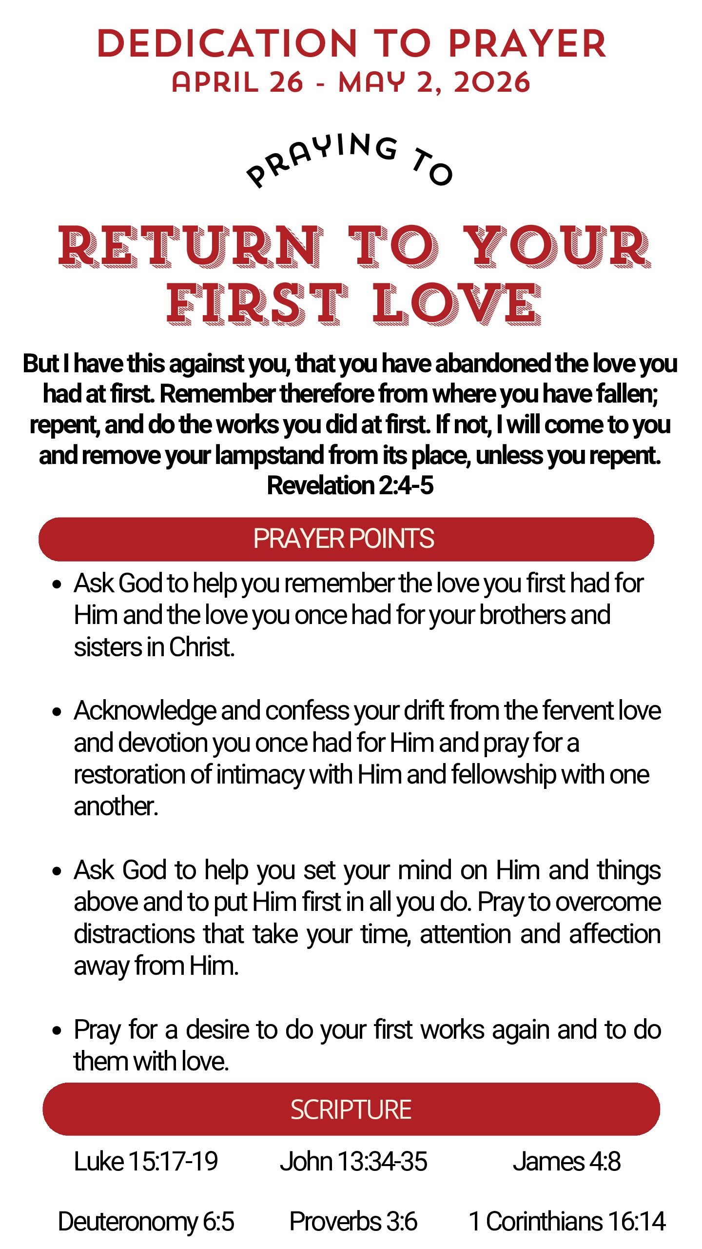 Prayer Focus: Return To Your First Love April 26-May 2, 2026