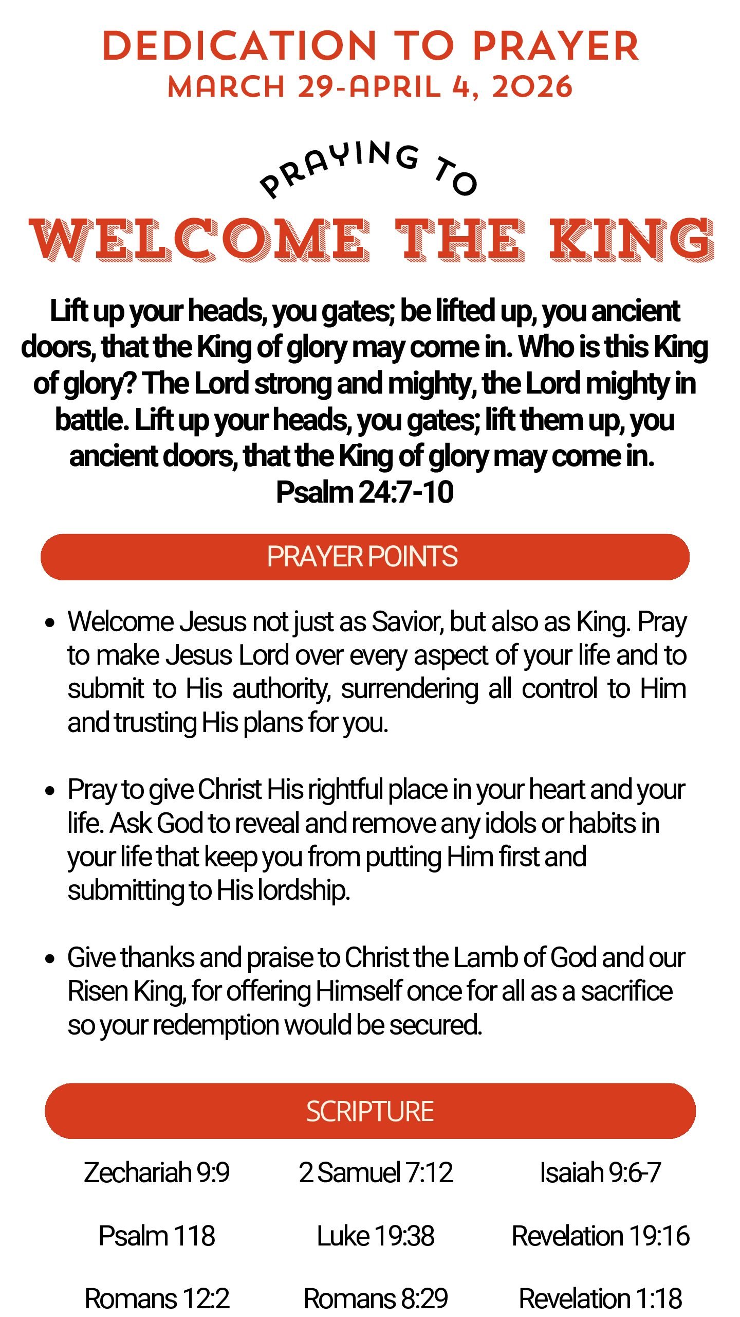 Prayer Focus: Welcome the King March 29 – April 4, 2026